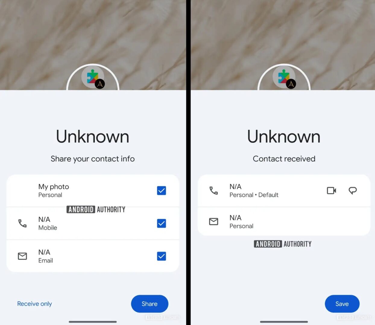 Az új Android-funkció a Google Play Services legutóbbi verziójában bukkant fel, „Gesture Exchange” néven. A rendszerben található egy Contact Exchange nevű komponens is, amely NFC-t használ az eszközök közti kapcsolat létrehozásához. A szivárgott képernyőképek alapján a felhasználók kiválaszthatják, milyen adatokat szeretnének megosztani – például fotót, telefonszámot vagy e-mail címet –, vagy beállíthatják, hogy csak fogadjanak információt.