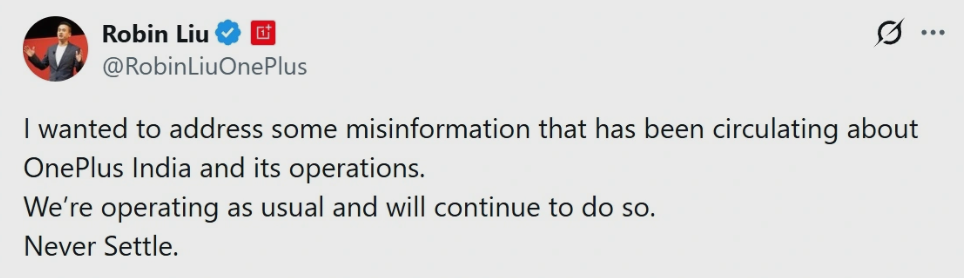 Felpörgött a pletykamotor az elmúlt napokban és több helyen is elterjedt, hogy a OnePlus akár teljesen leállhat, főleg az OPPO-n belüli átszervezések miatt. A cég indiai vezetése azonban most egyértelműen cáfolta a híreszteléseket, Robin Liu, a OnePlus India CEO-ja január 21-én nyilatkozott arról, hogy Indiában minden üzleti és operatív folyamat a megszokott rendben működik, a leállásról szóló állításokat pedig egyszerűen hamisnak és félrevezetőnek nevezte.