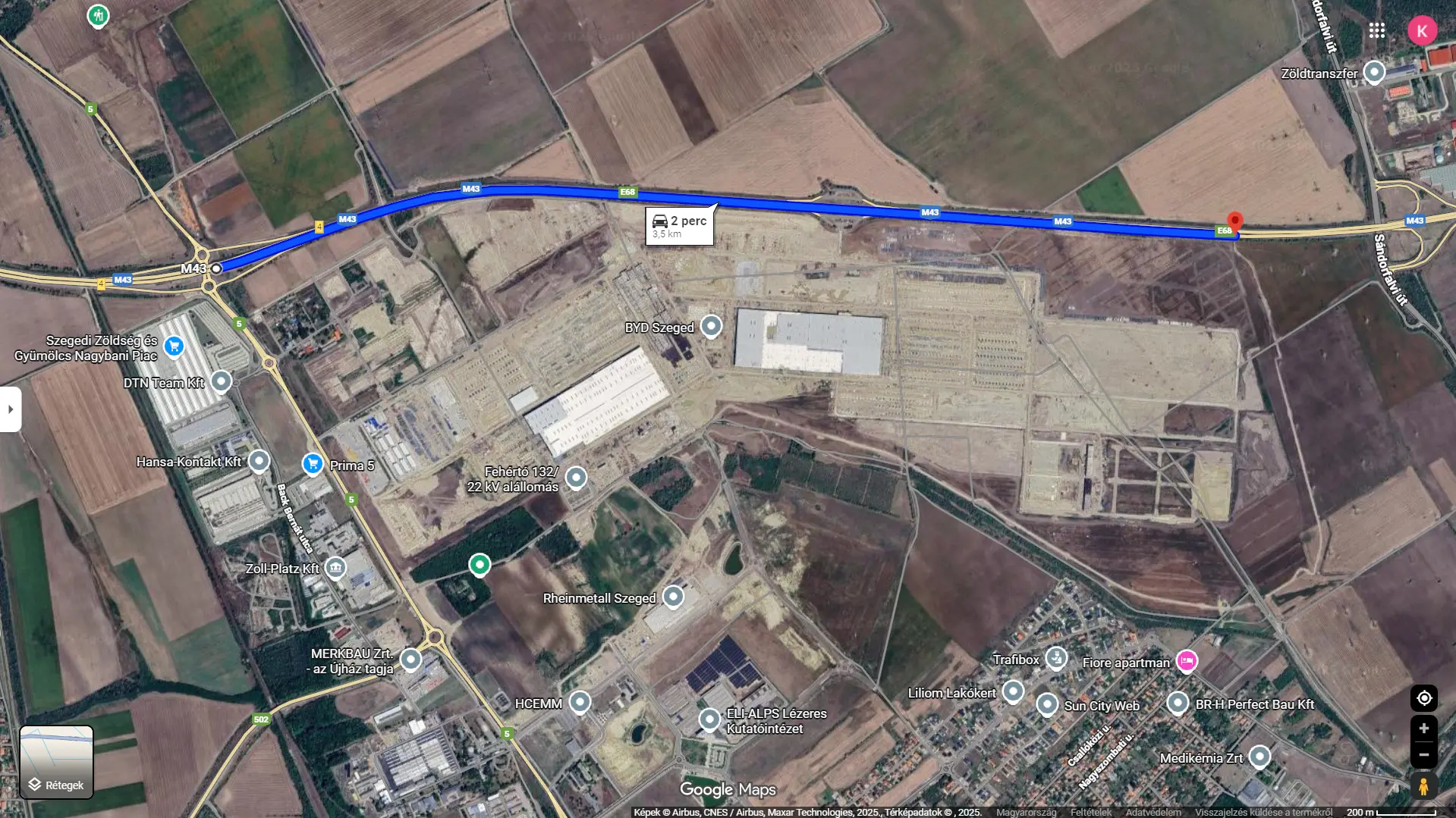 Már a Google műholdképen is látható az építkezés, így pedig még egyértelműbbé válik, hogy mekkora is lesz valójában a készülő gyár. Az üzem szomszédságában található Szegednek több városrészét is kényelmesen lenyomja méretben, de akadnak olyan komplett települések is Magyarországon, amelyek kisebb területen helyezkednek el.