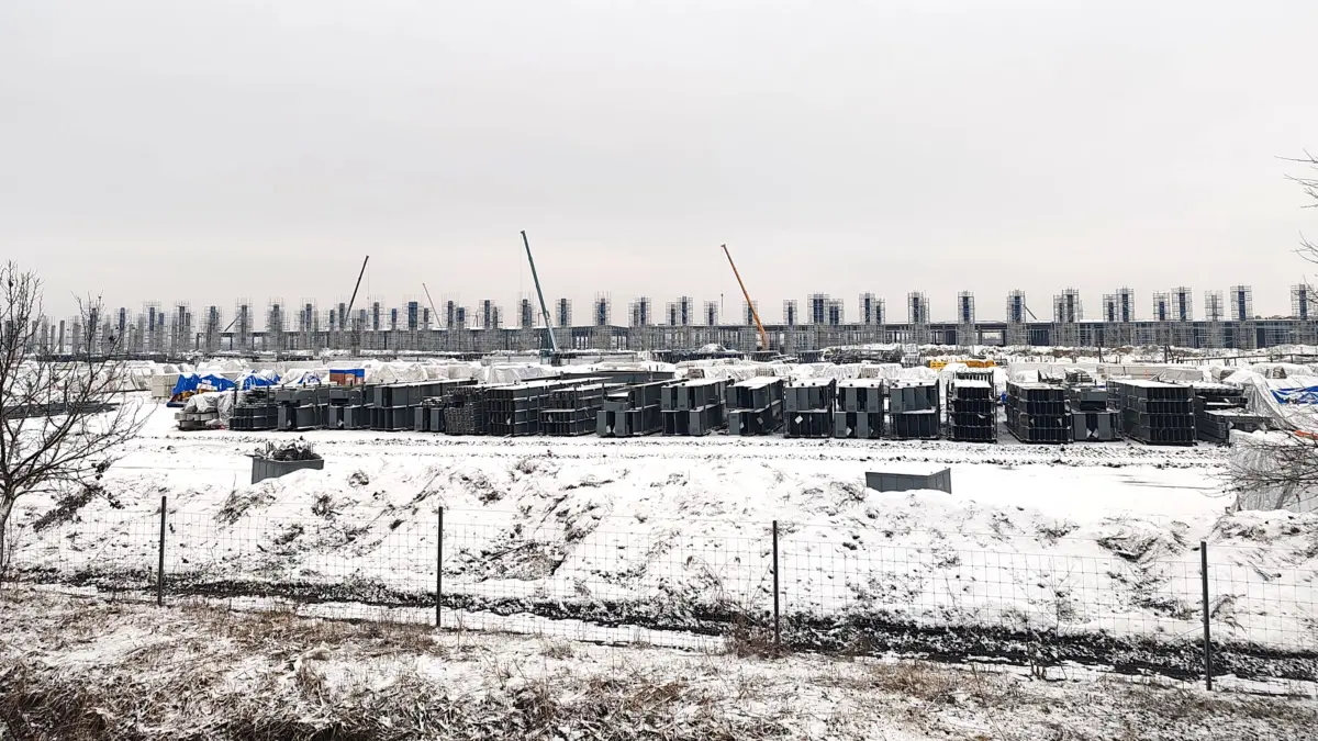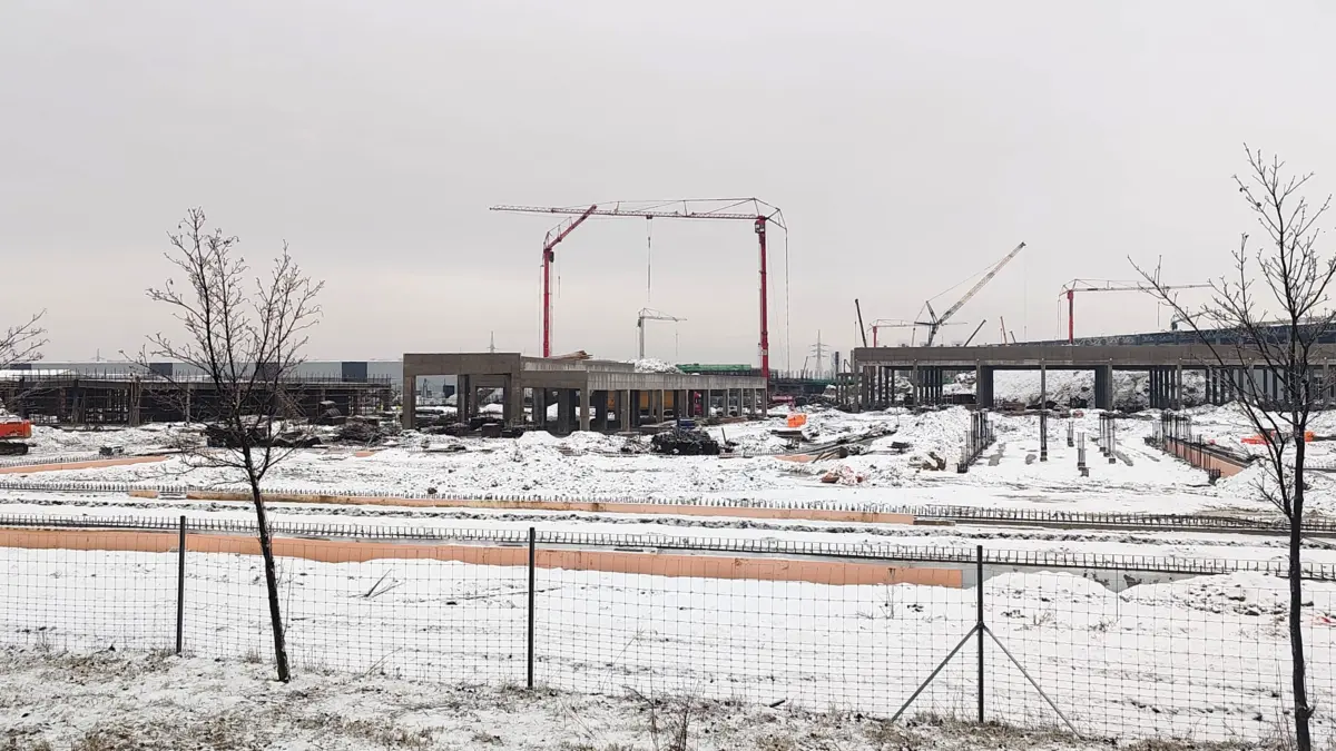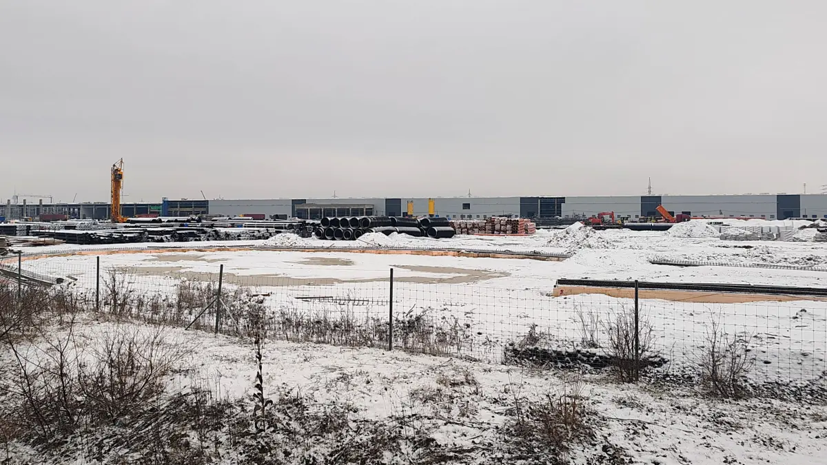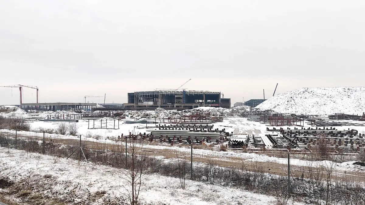 Jól láthatóak az autópályáról olyan épületek és csarnokok, amelyekre már a külső borítás is felkerült, ám még ezek sem készültek el teljesen, ahogy az a fenti fotó bal oldalán is látszik. A főbb épületek alapozása minden esetben kész, már az elsődleges tartóoszlopok is állnak. Kérdéses azonban, hogy az utak, a melléképületek, valamint a közművek bevezetése mennyi időt vesz még igénybe.