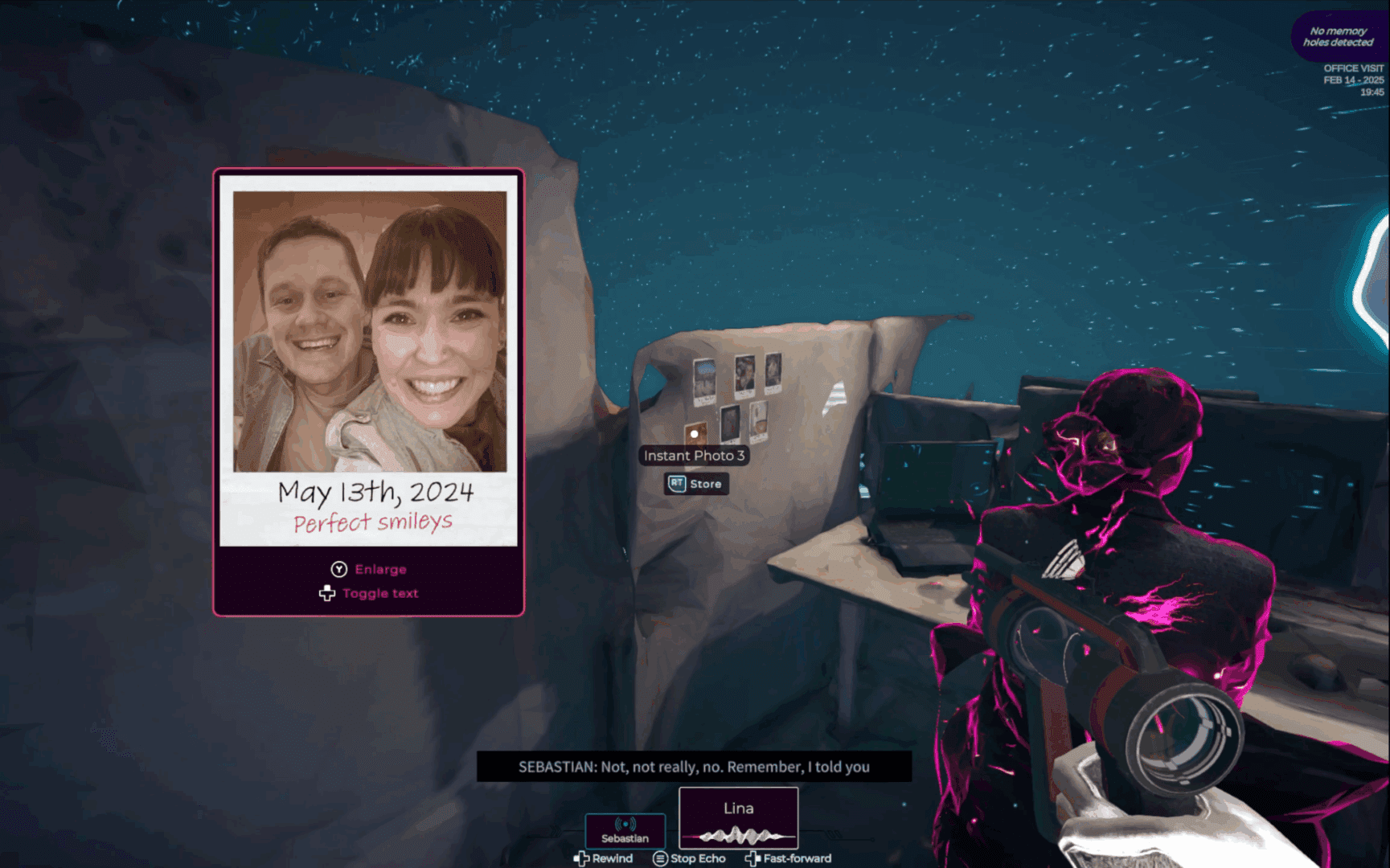 Az egyik legfeltűnőbb erősség a fotogrammetriás 3D-scan stílus. A fejlesztők valódi színészeket és dán helyszíneket dolgoztak fel, így a diorámák egyszerre valószerűek és torzultak, a papírmasészerű, mégis részletgazdag felületek a „rekonstruált emlék” textúrájaként hatnak. A kompozíciók gyakran színháziak: megfagyasztott pillanatok, amelyeket a megfelelő „hiányzó részlet” beillesztése újra mozgásba hoz. A hatás rokonítható az Obra Dinn deduktív fotótablóival, ám itt a térbeliség és a hangok hangsúlyosabbak.