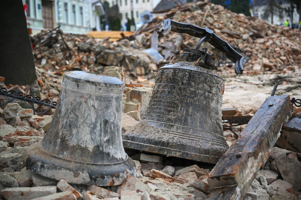 A szilágycsehi református templom leomlott tornyának harangjai (fotó: MTI/Czeglédi Zsolt)